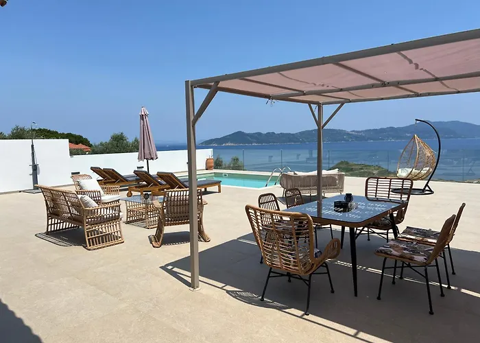 Bénéficiant d'un patio et d'un grand jardin pour votre plus grand plaisir, Four Seasons Villas Kalivia est situé à environ 5 minutes de marche de la Plage de Megas Gialos. Cette villa de 9 pièces offre une piscine privée.